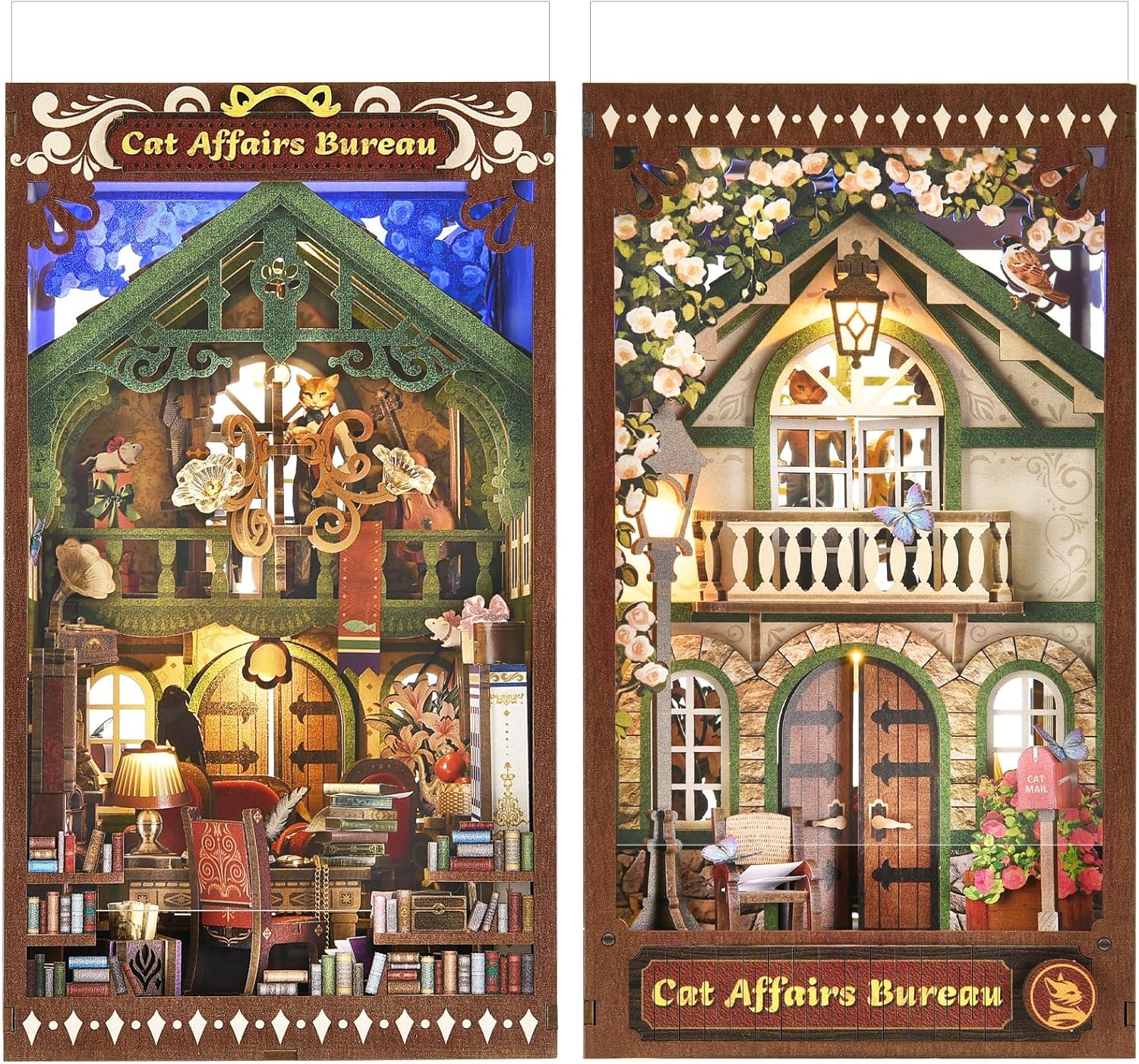 Cat Affairs Bureau được thiết kế với hai mặt trước & sau tinh xảo, cho phép bạn ngắm nhìn toàn cảnh câu chuyện nhỏ từ nhiều góc độ khác nhau. Đây không chỉ là một Book Nook đơn thuần mà còn là một tác phẩm nghệ thuật trưng bày. Dù đặt ở kệ sách, bàn làm việc hay góc phòng khách, sản phẩm đều thu hút ánh nhìn ngay lập tức.