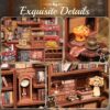 Từ chiếc máy pha cà phê cổ điển, menu mini, tách espresso cho đến những chậu cây cảnh, mọi thứ đều được làm cực kỳ tỉ mỉ. Kết cấu các chi tiết như da bọc ghế, vân gỗ, đèn bàn hay kệ sách đều được tái hiện chân thực đến từng milimet. Những ai yêu thích sự cầu kỳ và nghệ thuật tiểu tiết sẽ không thể rời mắt.