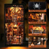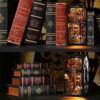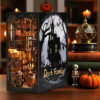 Ánh sáng vàng ấm từ đèn LED khiến khung cảnh thêm phần kỳ bí, gợi nhớ đến không gian trong phim kinh dị. Đây không chỉ là một mô hình book nook, mà còn là một tác phẩm nghệ thuật đầy cảm xúc. Sản phẩm phù hợp để tạo điểm nhấn ấn tượng cho kệ sách hoặc góc trưng bày.