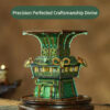 Sự kết hợp giữa các chi tiết phức tạp với màu xanh ngọc cổ điển và ánh kim vàng đồng mang đến cảm giác sang trọng, gợi nhớ về những nghi lễ linh thiêng và truyền thống huy hoàng. Đây không chỉ là một chiếc hộp đựng vật dụng mà còn là một minh chứng lịch sử, phản ánh kỹ thuật chế tác tinh vi và quan niệm thẩm mỹ của người xưa.