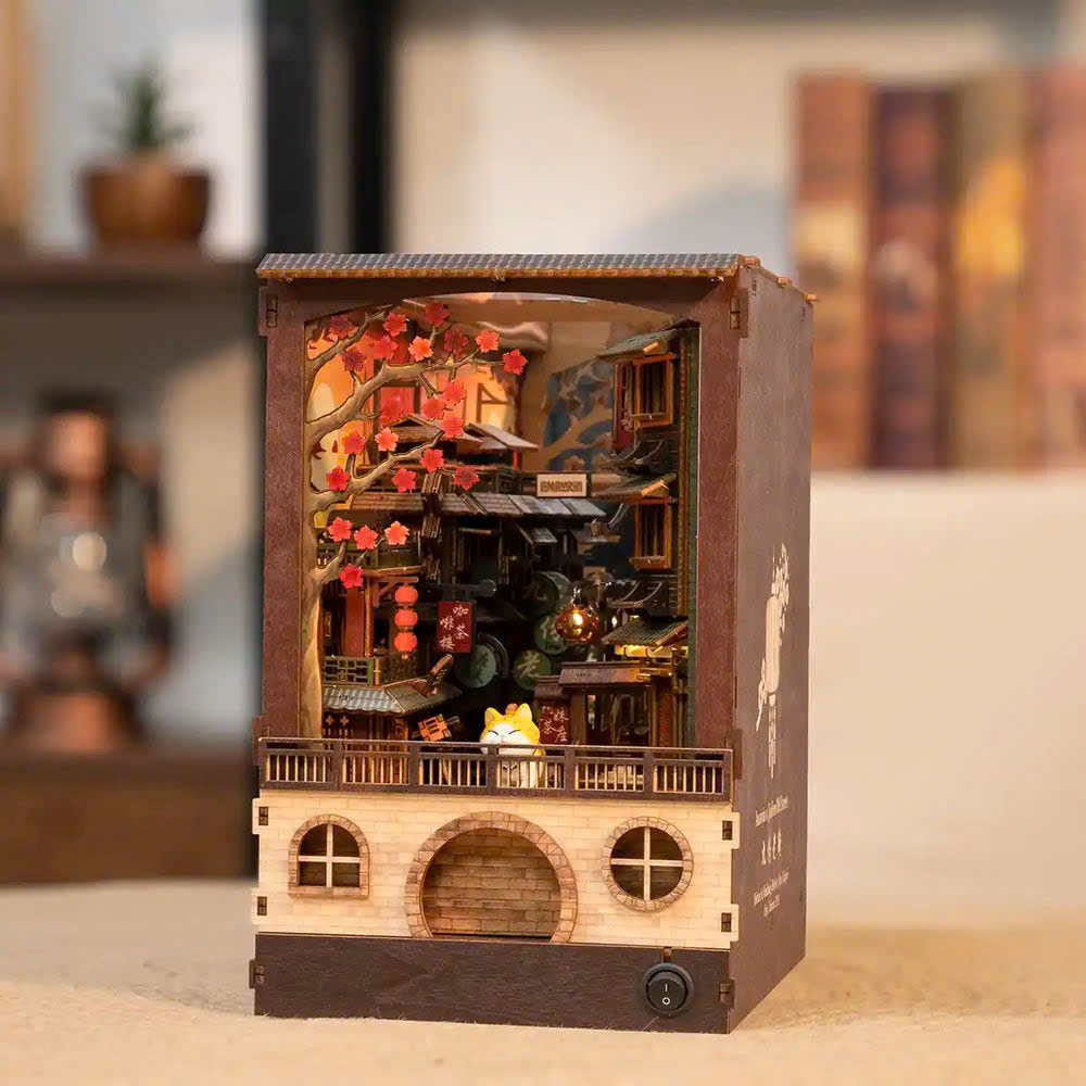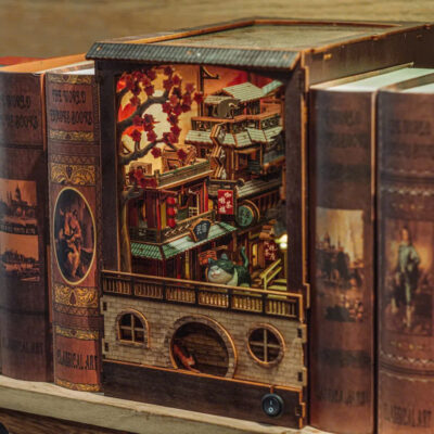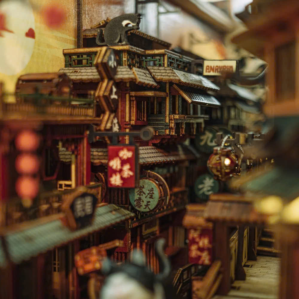 JiuFen Old Street Book Nook Kit tái hiện không gian phố cổ nổi tiếng ở Đài Loan, với mái ngói nghiêng, lồng đèn đỏ và hẻm nhỏ lát đá dẫn lối vào lữ quán ấm cúng. Khi hoàn thiện, mô hình như một khung cảnh mini bạn có thể đặt giữa các cuốn sách — mở ra hành trình khám phá văn hóa châu Á ngay trong không gian mình.