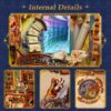 Các họa tiết cổ điển, từ giá sách đến các nhân vật tí hon, đều mang đậm phong cách châu Âu thời trung cổ. Những chi tiết nhỏ như bút lông, cuộn giấy và sách cổ làm cho mỗi góc nhìn trở thành một câu chuyện riêng. Vỏ hộp được làm từ chất liệu cao cấp, bền bỉ với thời gian, mang lại cảm giác sang trọng và độc đáo. Thư viện nhỏ bé này không chỉ là một món đồ trang trí mà còn là một chiếc cửa sổ mở ra thế giới của trí tưởng tượng.