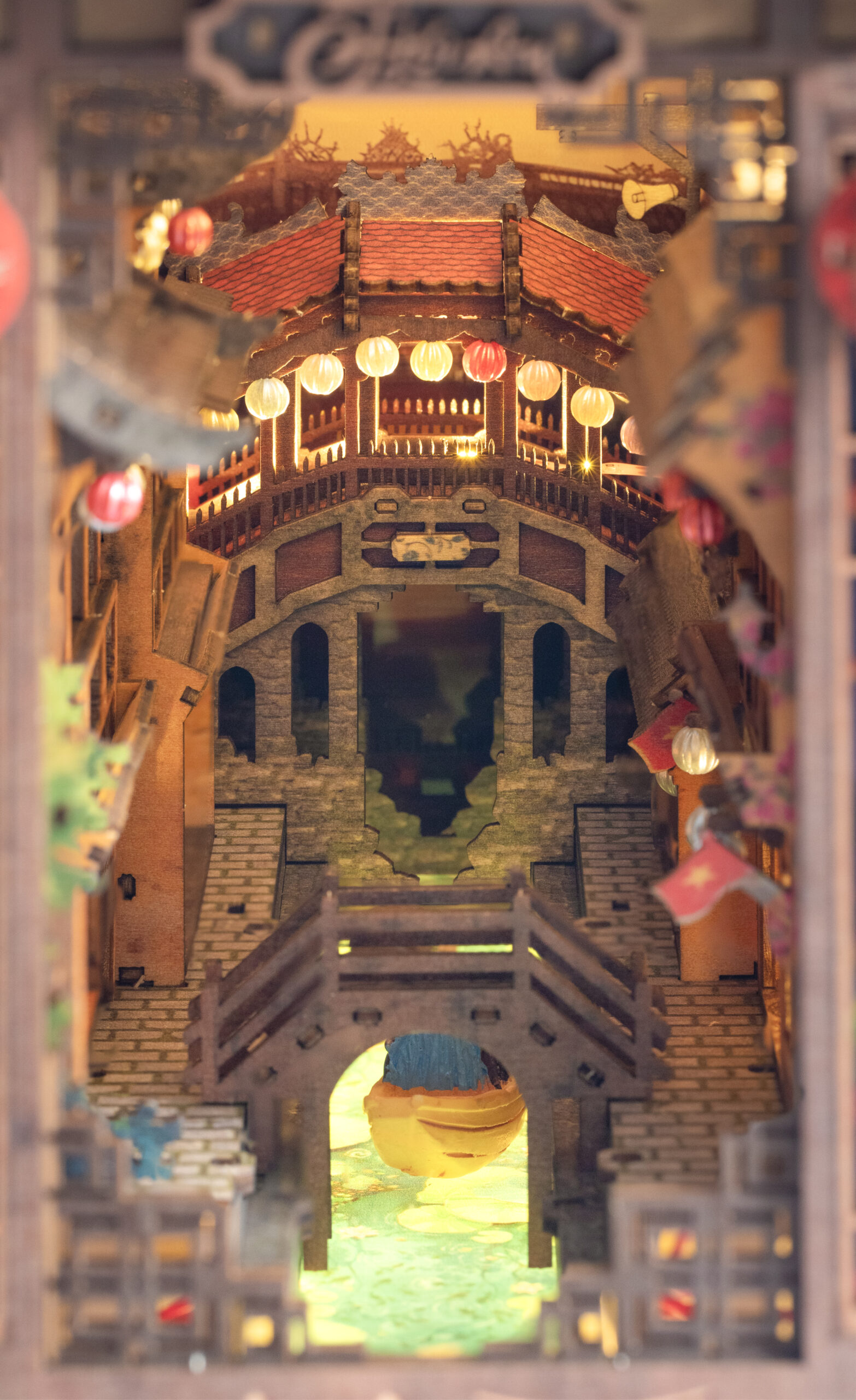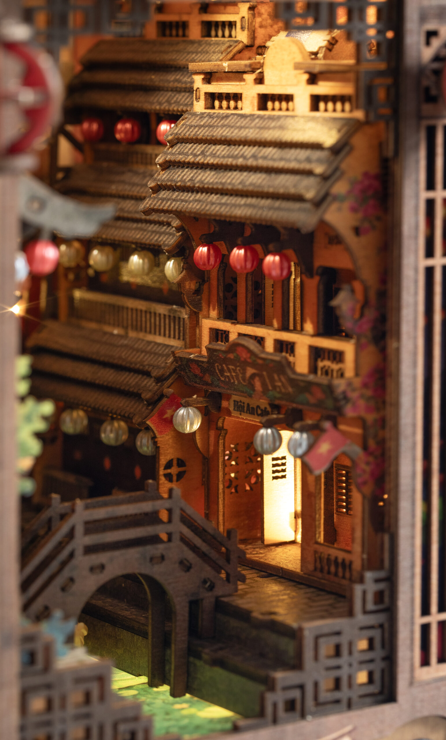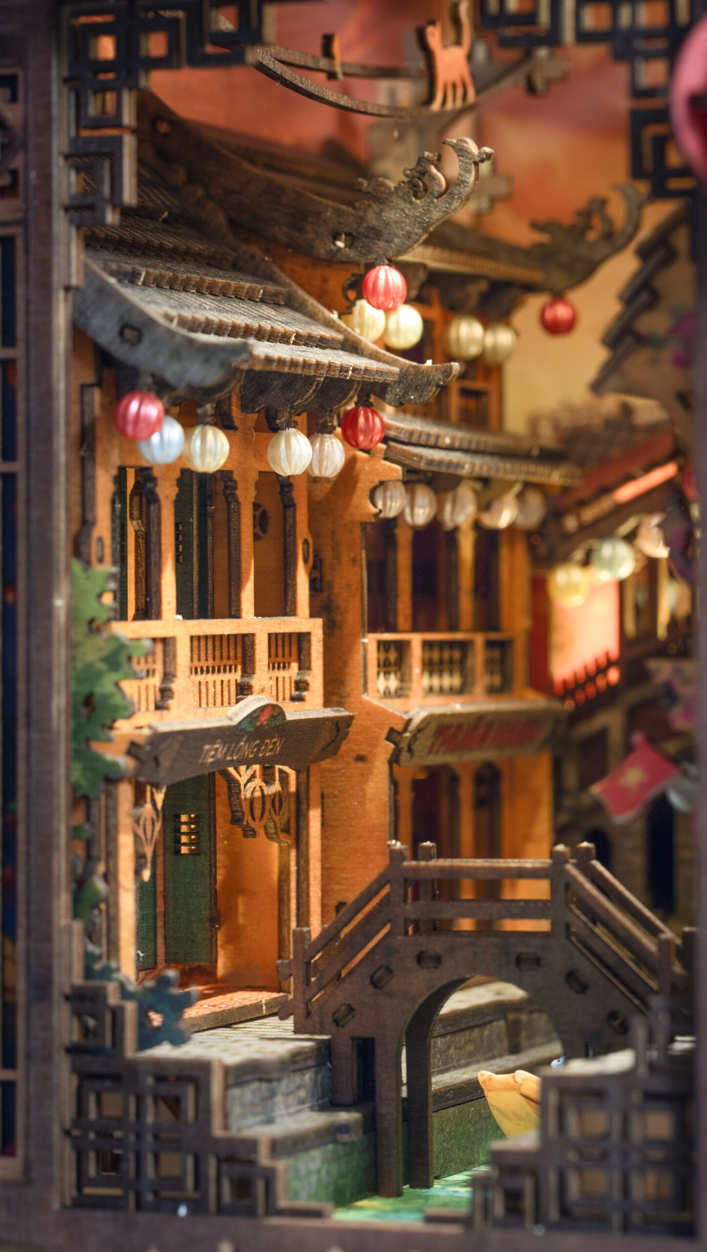 Khi đặt giữa kệ sách, mô hình tạo cảm giác như đang mở ra một cánh cửa dẫn vào không gian phố cổ yên bình. Các chi tiết được cắt ghép chính xác, tạo chiều sâu thị giác ấn tượng. Mỗi góc nhìn đều gợi lên cảm xúc hoài niệm và thư thái. Đây là lựa chọn lý tưởng cho những ai yêu văn hóa Việt và nghệ thuật thủ công.