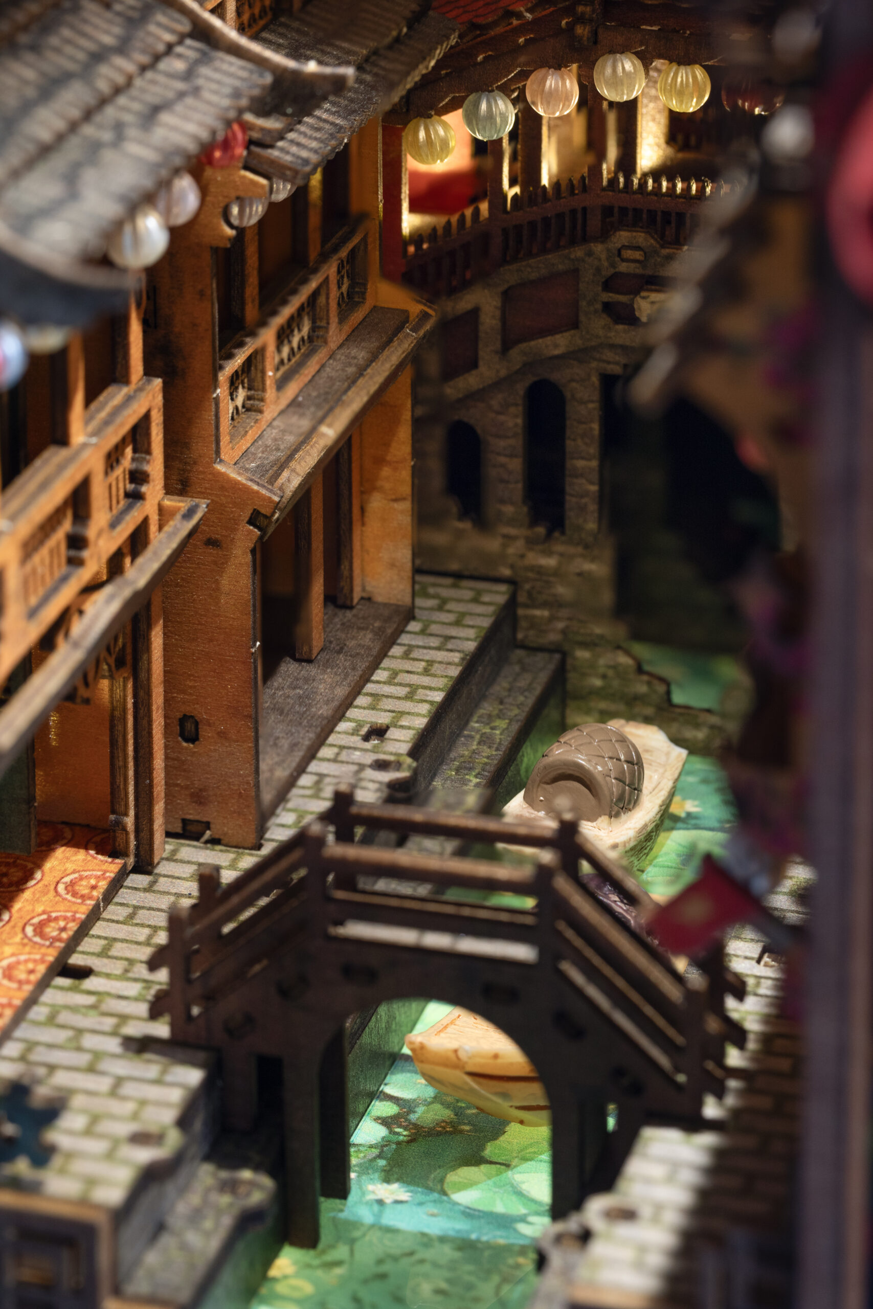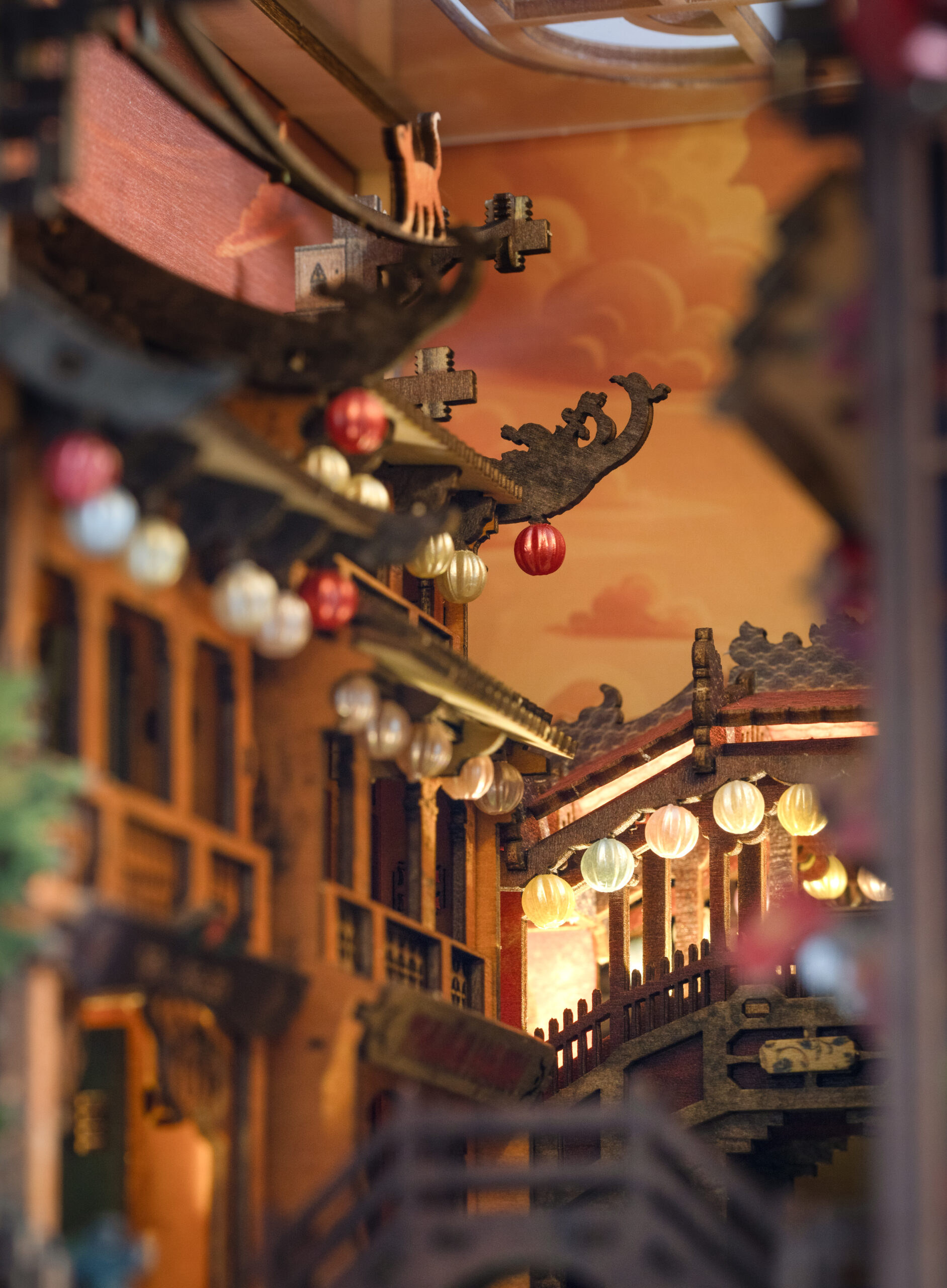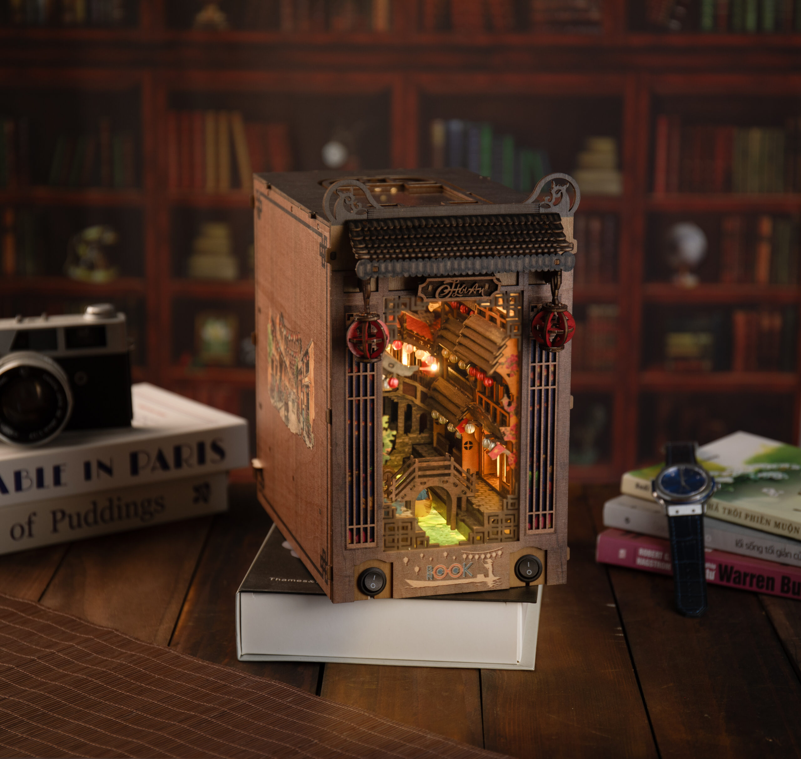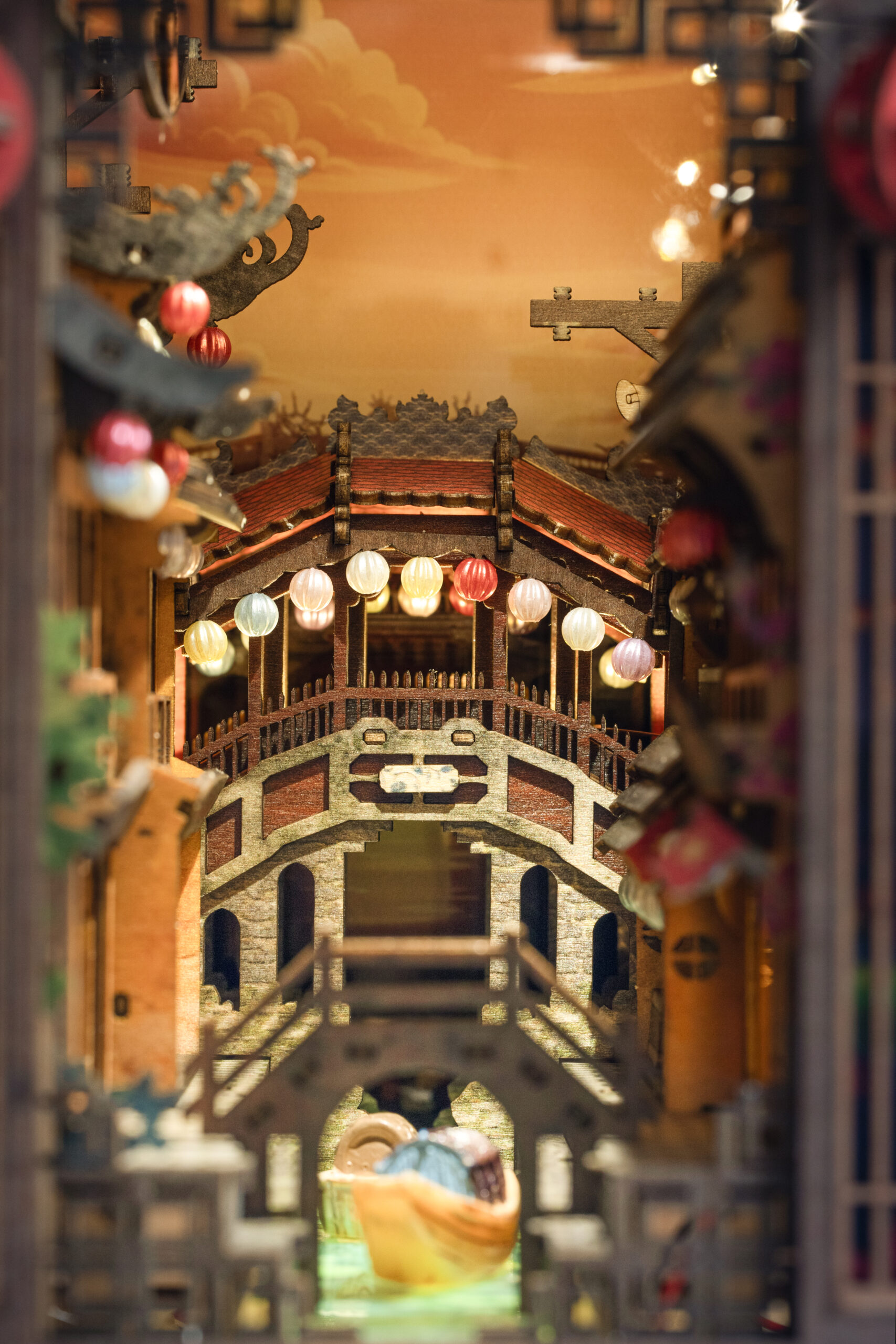 Khi đặt giữa kệ sách, mô hình tạo cảm giác như đang mở ra một cánh cửa dẫn vào không gian phố cổ yên bình. Các chi tiết được cắt ghép chính xác, tạo chiều sâu thị giác ấn tượng. Mỗi góc nhìn đều gợi lên cảm xúc hoài niệm và thư thái. Đây là lựa chọn lý tưởng cho những ai yêu văn hóa Việt và nghệ thuật thủ công.