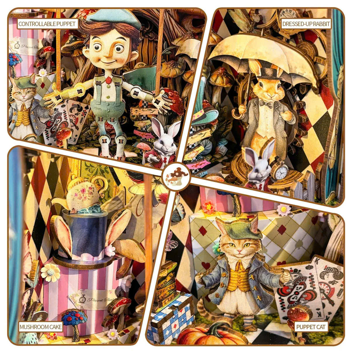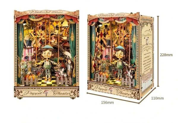 Puppet’s Adventure cho phép người chơi tương tác thủ công thông qua các chi tiết chuyển động cơ học. Các bộ phận được thiết kế để có thể thao tác nhẹ nhàng, mang lại cảm giác chơi mô hình chân thực.