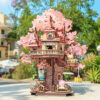 Các chi tiết như tán hoa anh đào, ban công, băng ghế, và chiếc xe đạp nhỏ nhắn đều được gia công tỉ mỉ, mang lại độ chân thực cao. Sự phối hợp màu sắc và cấu trúc hài hòa biến Sakura Tree House thành một tác phẩm nghệ thuật tinh tế, lý tưởng để trang trí trong mọi không gian.