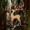 Hình ảnh chú nai đứng giữa rừng cây rậm rạp, dưới ánh sáng lung linh của hệ thống LED, mang đến không gian ấm áp và thư thái. Mỗi mảnh ghép được chế tác từ gỗ tự nhiên, tái hiện sinh động vẻ đẹp và sự kỳ diệu của thế giới hoang dã.