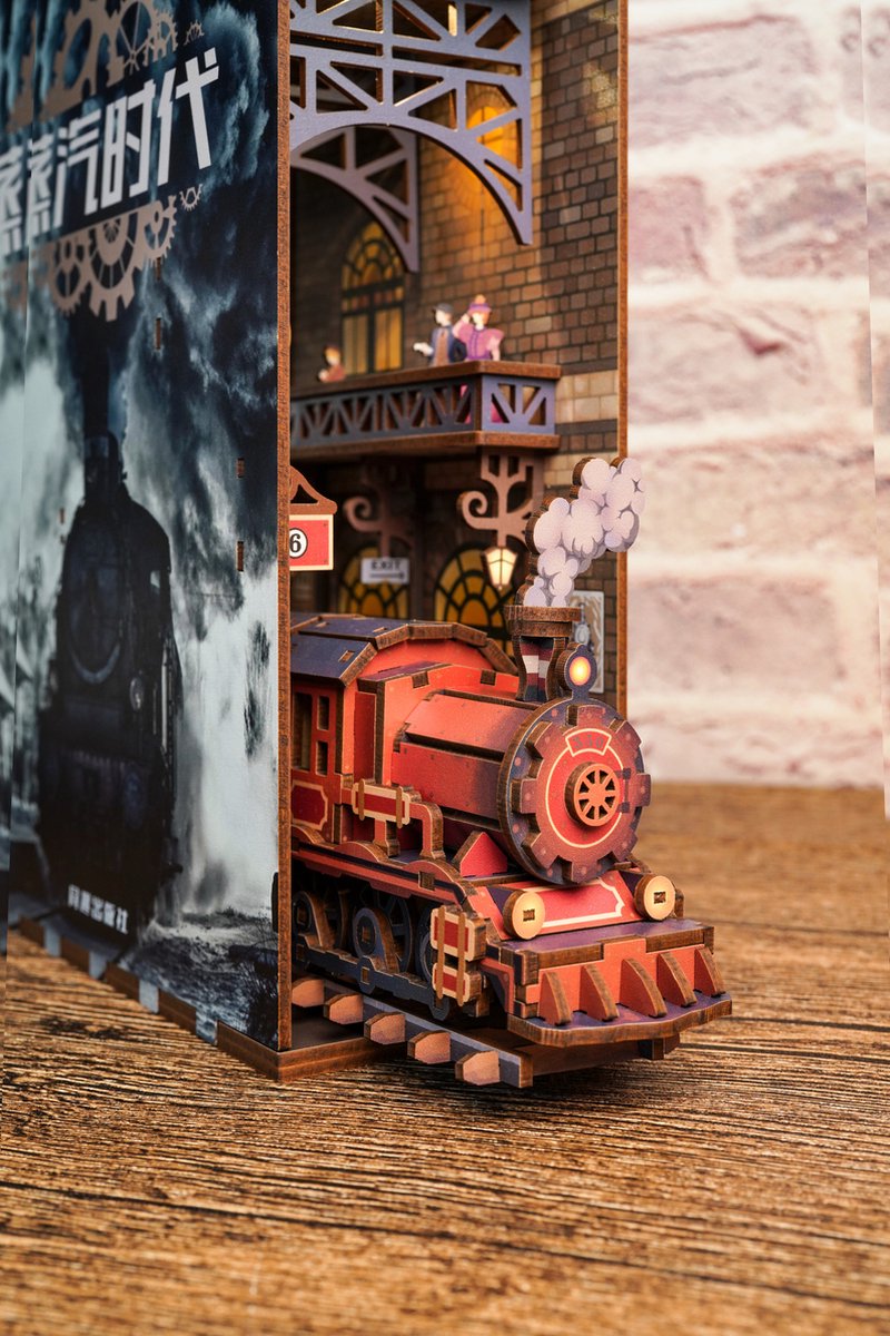 “The Steam Age” tái hiện một nhà ga cổ điển với kiến trúc tinh tế và đầy hoài niệm. Các chi tiết được thiết kế tỉ mỉ như cột sắt, mái vòm, và các bậc cầu thang tạo nên cảm giác chân thực. Cửa sổ kính mô phỏng ánh sáng lung linh từ đèn LED bên trong, mang lại không gian ấm áp.