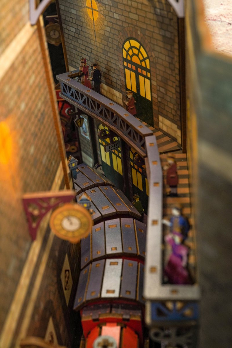 Những chiếc đồng hồ cổ điển và biển số ga tàu được tái hiện hoàn hảo, làm tăng tính thẩm mỹ cho mô hình. Đây là nơi hội tụ giữa nghệ thuật thủ công và lịch sử, đưa người xem trở về thời đại huy hoàng của tàu hơi nước.